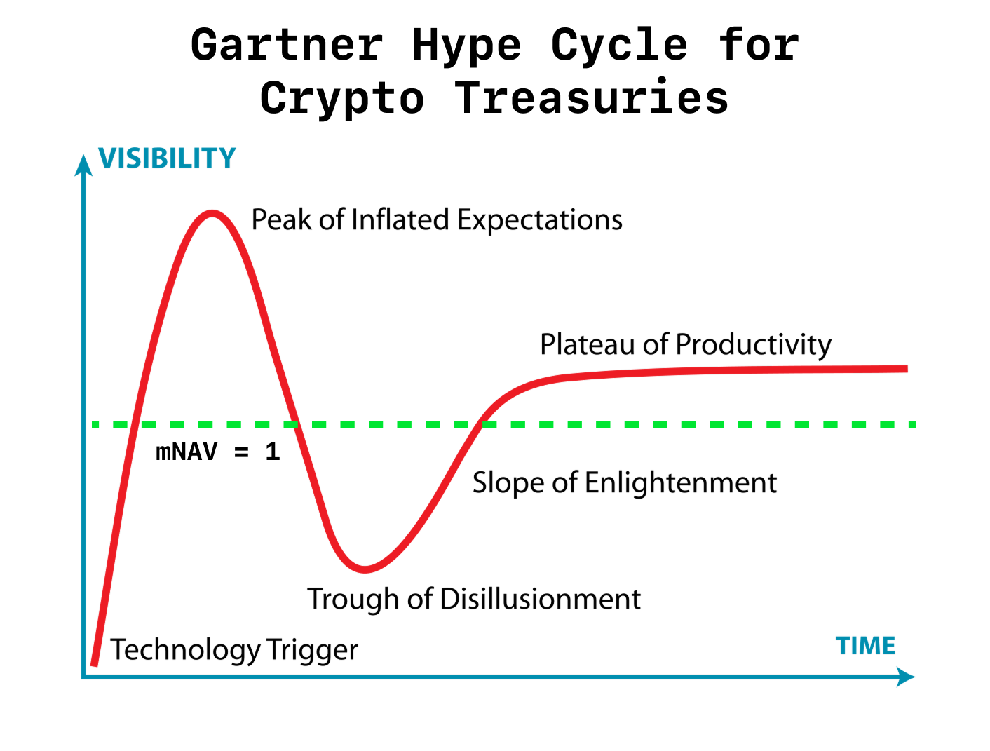 Crypto has a tendency to speedrun traditional finance. And with crypto treasury companies, we may already be watching the Gartner Hype Cycle play out, from early euphoria of 4x+ mNAVs to the current phase of compression and skepticism.